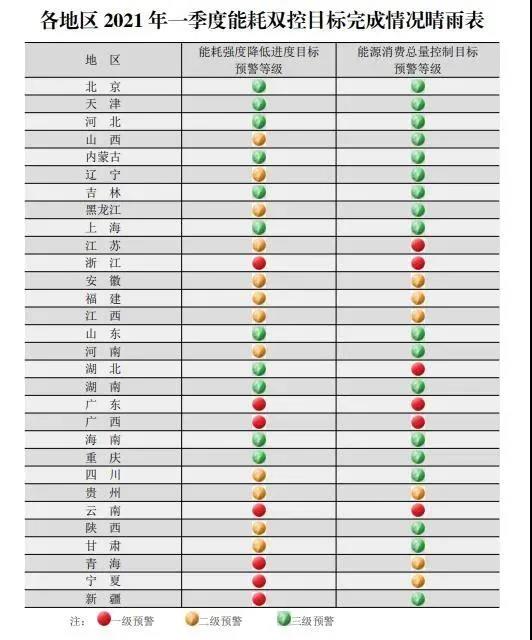 為貫徹落實黨中央、國務(wù)院關(guān)于強化能源消費總量和強度雙控的決策部署,加強能耗雙控形勢分析預(yù)警,國家發(fā)展改革研究提出了《各地區(qū)2021年一季度能耗雙控目標完成情況晴雨表》。