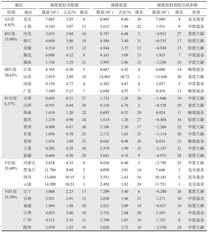 3.1中國(guó)碳排放權(quán)區(qū)域分配及初始空間余額