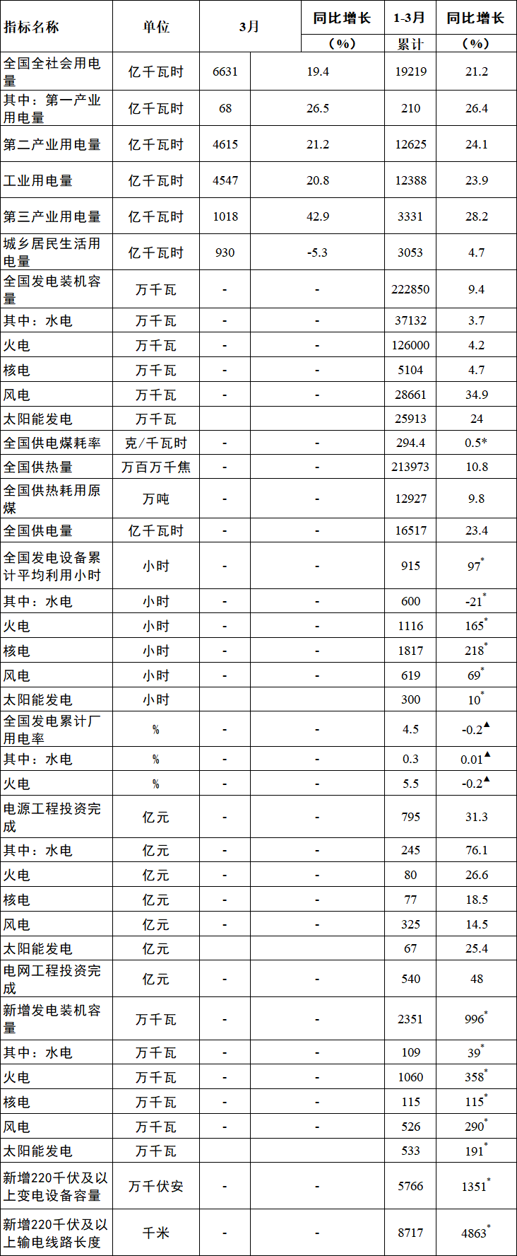 4月20日,國家能源局發(fā)布1-3月份全國電力工業(yè)統(tǒng)計(jì)數(shù)據(jù)。