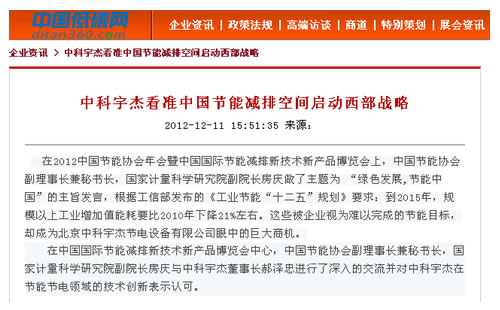 中科宇杰看準中國節(jié)能減排空間啟動西部戰(zhàn)略