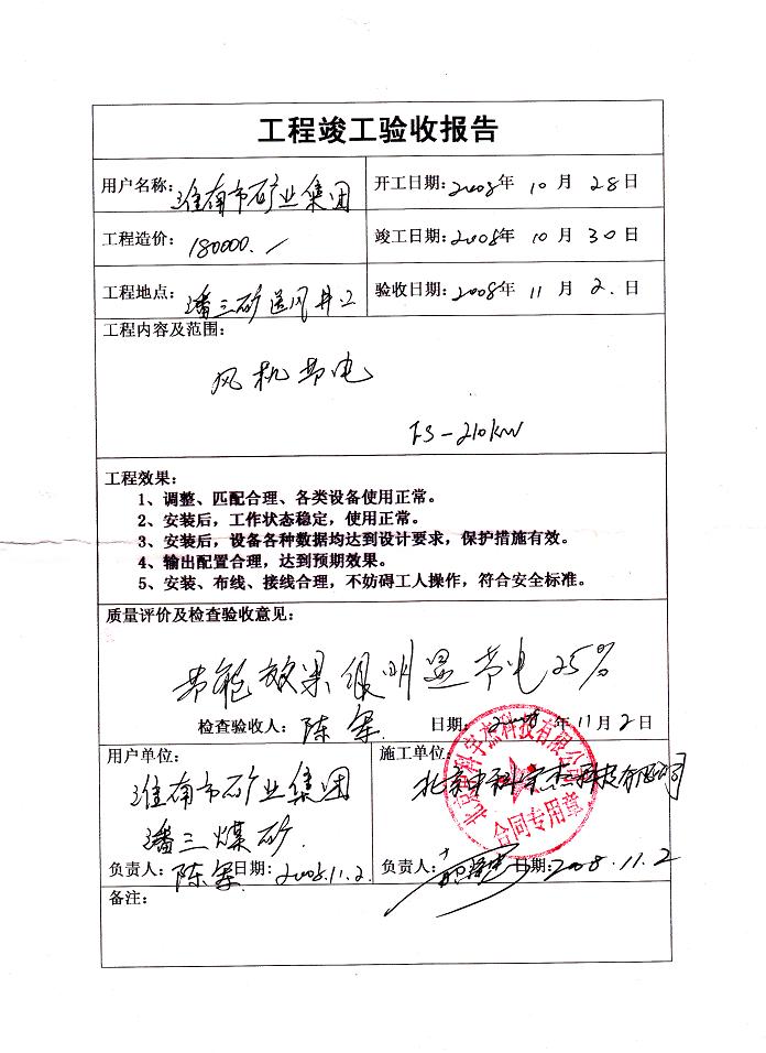 淮南礦業(yè)集團從1903年淮南煤礦開礦起,已歷盡百年滄桑。2002年以來,企業(yè)抓住天時、地利、人和的歷史發(fā)展機遇,鑄就了新的輝煌,成為全國14個億噸級煤炭生產(chǎn)基地、6個煤電一體化基地之一,是我國黃河以南最大的新型能源企業(yè)。2010年,位居中國企業(yè)500強第183位,煤炭、電力、房地產(chǎn)三大主業(yè)規(guī)模居安徽省首位。淮南集團對節(jié)能降耗非常重視,不但加強生產(chǎn)用電管理,增強職工的節(jié)電意識,深挖內(nèi)部節(jié)約潛力,降低電力成本,最大限度的降低電能消耗,還重視主動尋求節(jié)能改造的先進技術(shù),與中科宇杰一起于2008年進行了節(jié)能項目合作。