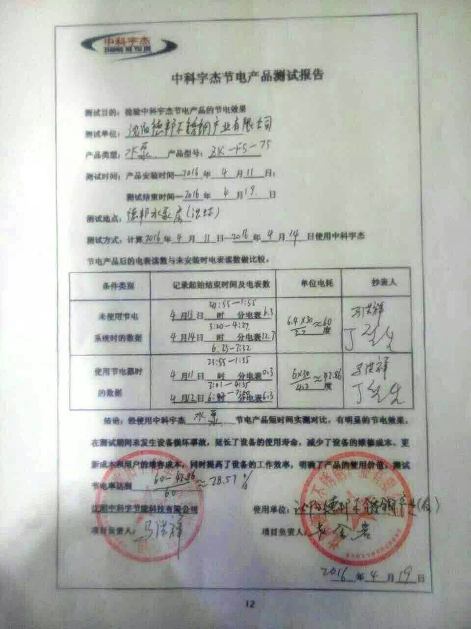 安裝調試驗收,節能效率高達47.37%。節能設備安裝后,不但完全沒有對原設備造成不良的影響,還起到了延長設備壽命,減少維修成本的作用。該項目試點工程的節電效果顯著,得到了企業領導的一致認可。