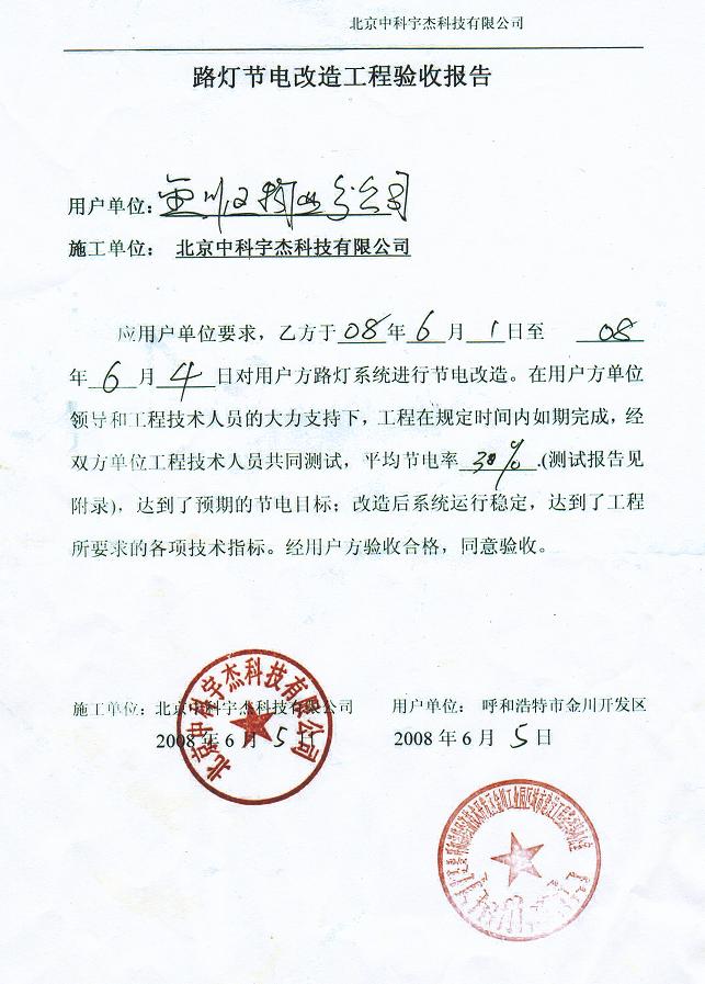 呼和浩特經(jīng)濟技術(shù)開發(fā)區(qū)金川工業(yè)園區(qū)地處呼和浩特——包頭——鄂爾多斯資源富集的金三角區(qū)域,是連接呼包兩市工業(yè)走廊的橋頭堡,也是連接京、津、唐與西北地區(qū)以及蒙古和俄羅斯的重要中轉(zhuǎn)站,于1992年8月8日奠基成立,2000年7月2日經(jīng)國務(wù)院批準(zhǔn)為國家級經(jīng)濟技術(shù)開發(fā)區(qū),批準(zhǔn)規(guī)劃面積6平方公里。開發(fā)區(qū)響應(yīng)國家的號召,在“十一五”期間,對節(jié)能減排工作不遺余力,于2008年邀請中科宇杰公司對其路燈系統(tǒng)進行節(jié)能改造。
