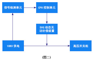 由圖二所示,在10KV高壓開關柜進線處并聯(lián)安裝SVG動態(tài)無功補償裝置,基本原理是利用可關斷大功率電力電子器件(如IGBT)組成自換相橋式電路,經(jīng)過電抗器并聯(lián)在電網(wǎng)上,適當?shù)卣{(diào)節(jié)橋式電路交流側(cè)輸出電壓的幅值和相位,或者直接控制其交流側(cè)電流,就可以使該電路吸收或者發(fā)出滿足要求的無功電流,實現(xiàn)動態(tài)無功補償?shù)哪康摹?/td> | ![]() |