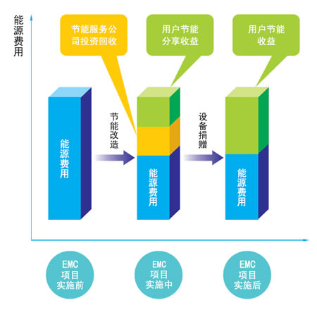 EMC 為客戶提供能源系統(tǒng)診斷、節(jié)能項(xiàng)目可行性分析、節(jié)能項(xiàng)目設(shè)計(jì),幫助項(xiàng)目融資,選擇并采購設(shè)備、安裝調(diào)試、進(jìn)行項(xiàng)目管理、培訓(xùn)操作人員、合同期內(nèi)系統(tǒng)設(shè)備維 護(hù)、節(jié)能量監(jiān)測(cè)等一條龍服務(wù),然后與客戶共同驗(yàn)證項(xiàng)目的節(jié)能效果、環(huán)境效益與經(jīng)濟(jì)效益,最后,與客戶分享項(xiàng)目實(shí)施后取得的經(jīng)濟(jì)效益,回收項(xiàng)目的投資和獲得 應(yīng)有的利潤(rùn)。