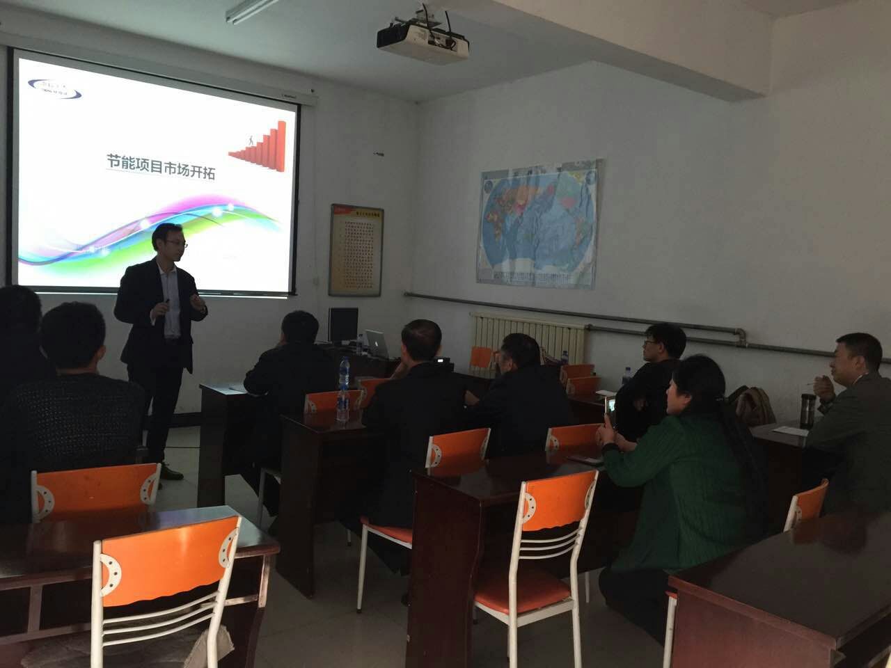 中科宇杰董事長郝澤忠先生也是做好了充分的準備,積極解答了代理商們在項目實施過程中存在的問題,并提出具體有效的解決方案,并在培訓會場中為大家詳細分析了目前我國節能項目市場前景,分享了節能項目市場開拓的經驗。